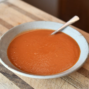 The incredibly sweet and umami-packed flavor of the tomatoes shines in this rich, bright, and comforting soup. Add on our gourmet grilled cheese kit (featuring Acme bread, Carmody cheese, and our Apricot Pepper Jelly) for an easy and comforting meal!